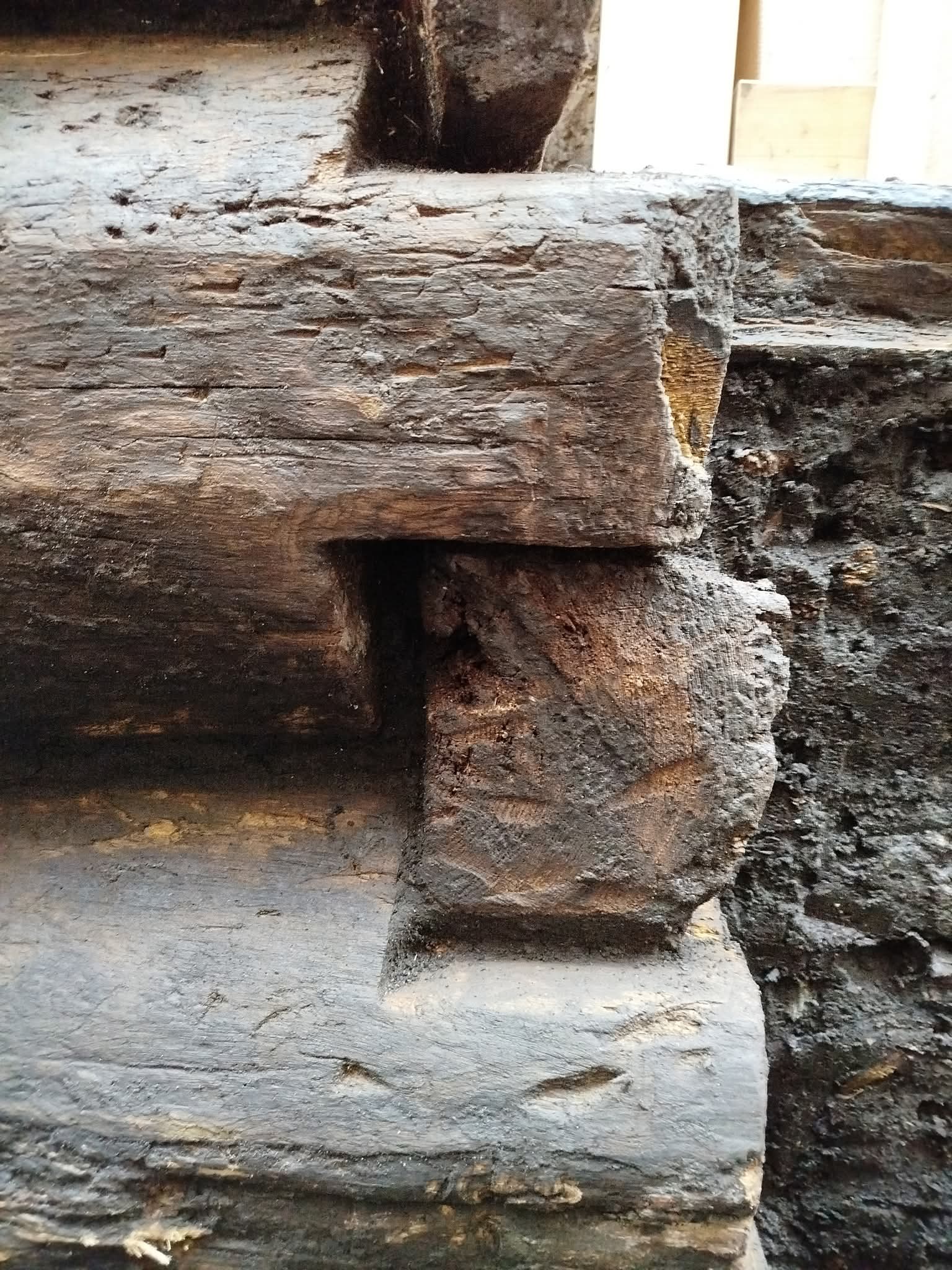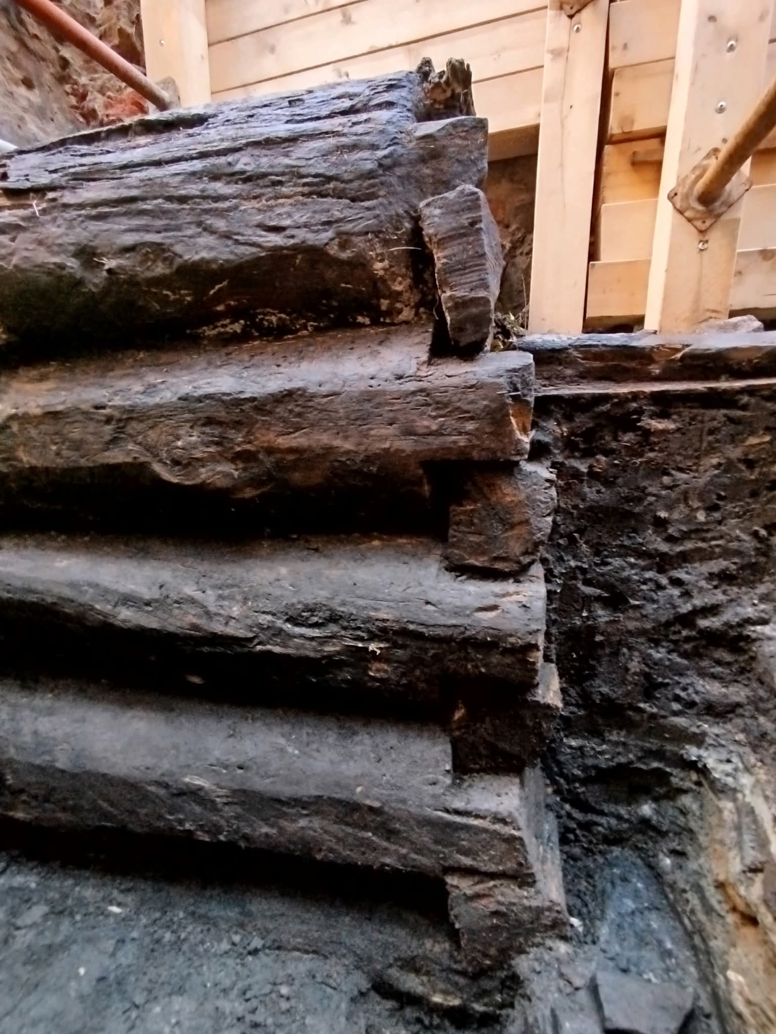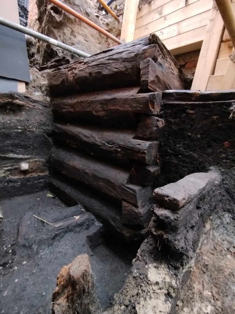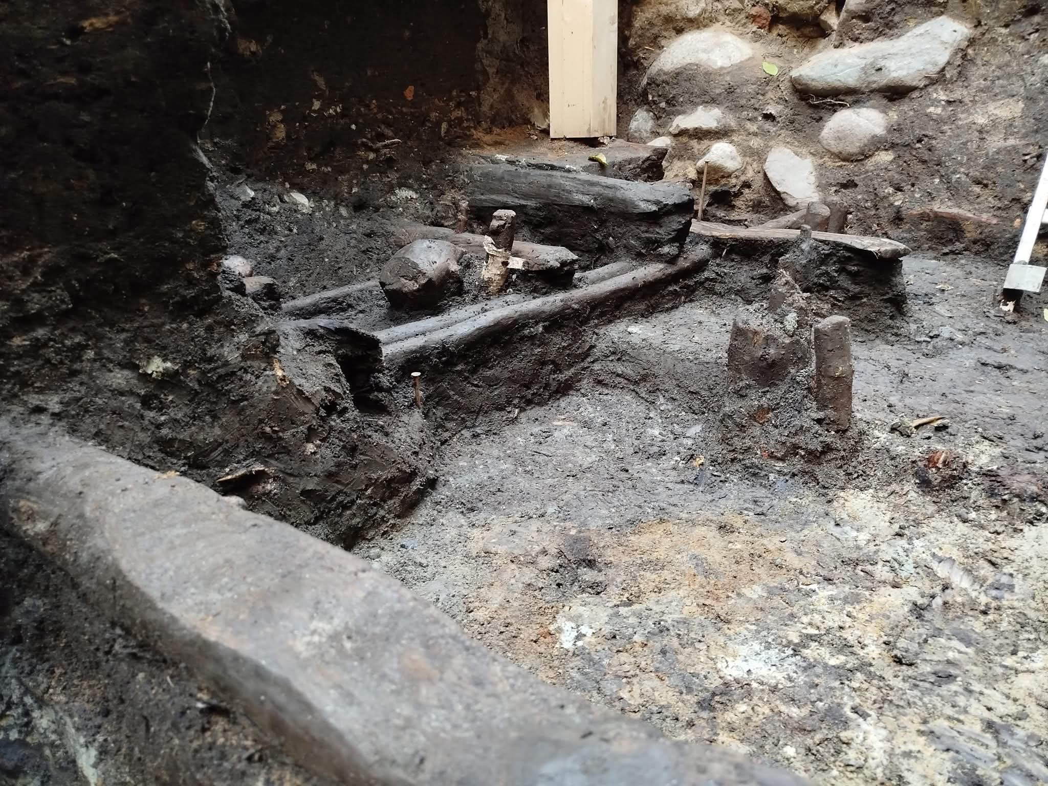 Odsłonięto zarys drewnianej konstrukcji powstałej w technice wieńcowej, z bardzo dobrze zachowanym łączeniem „na zakładkę”. Tym bardziej jest to wyjątkowe, ponieważ żadne tego typu drewniane budowle mieszkalne w zasadzie się nie zachowały. Odsłonięta konstrukcja ukazuje całkiem nowe spojrzenie na parcele zanim zaczęły dominować murowane kamienice.
