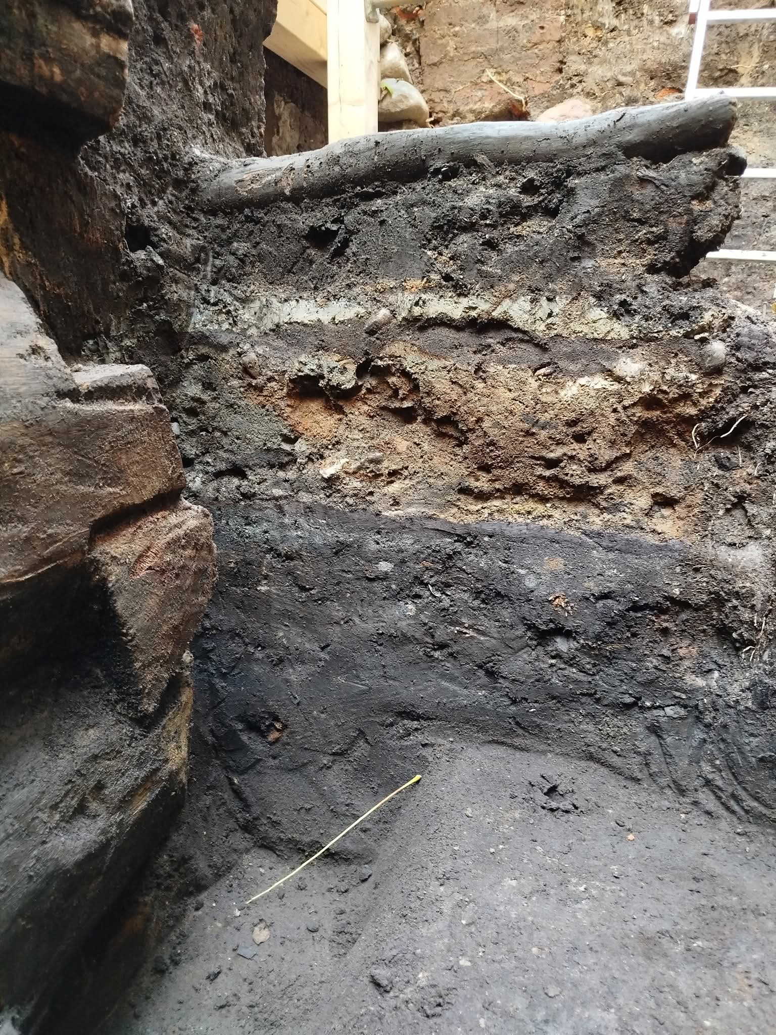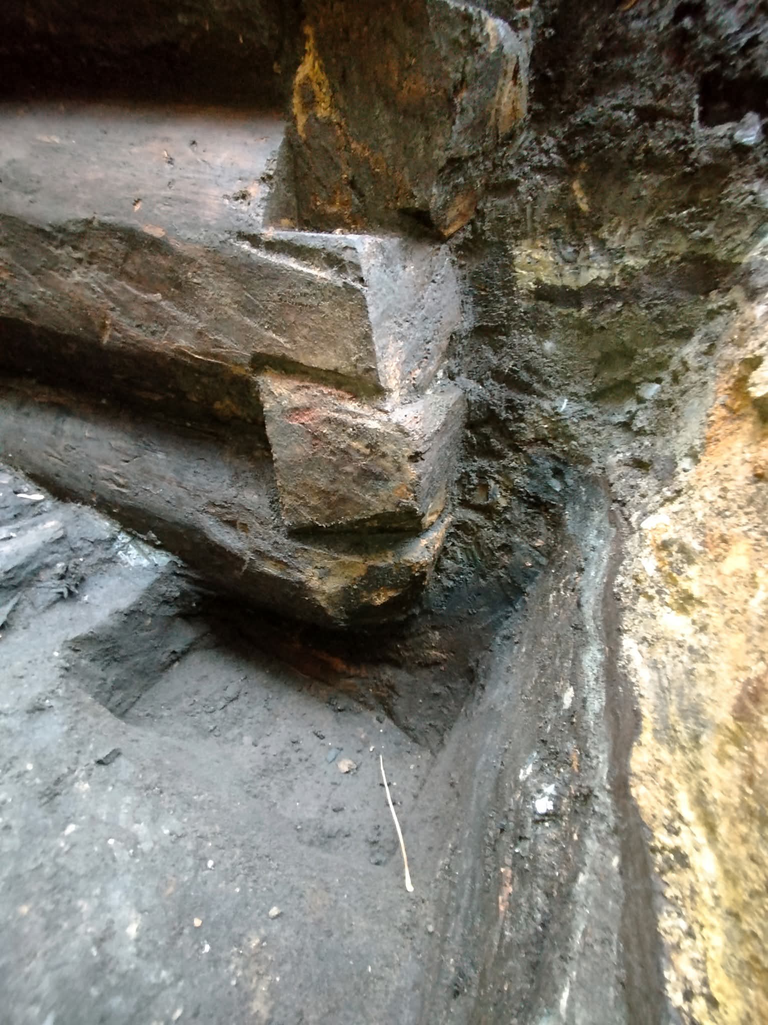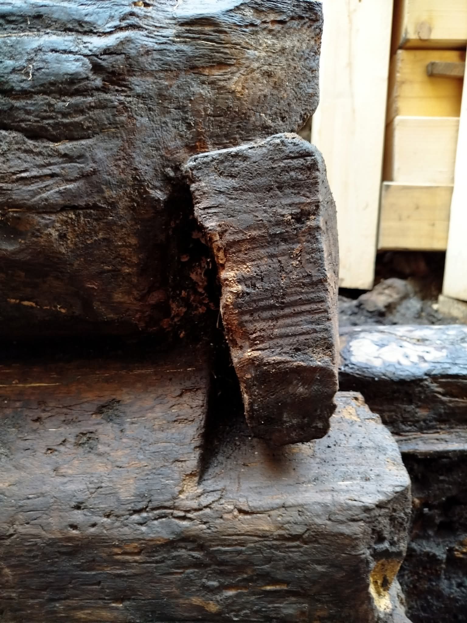 Odsłonięto zarys drewnianej konstrukcji powstałej w technice wieńcowej, z bardzo dobrze zachowanym łączeniem „na zakładkę”. Tym bardziej jest to wyjątkowe, ponieważ żadne tego typu drewniane budowle mieszkalne w zasadzie się nie zachowały. Odsłonięta konstrukcja ukazuje całkiem nowe spojrzenie na parcele zanim zaczęły dominować murowane kamienice.