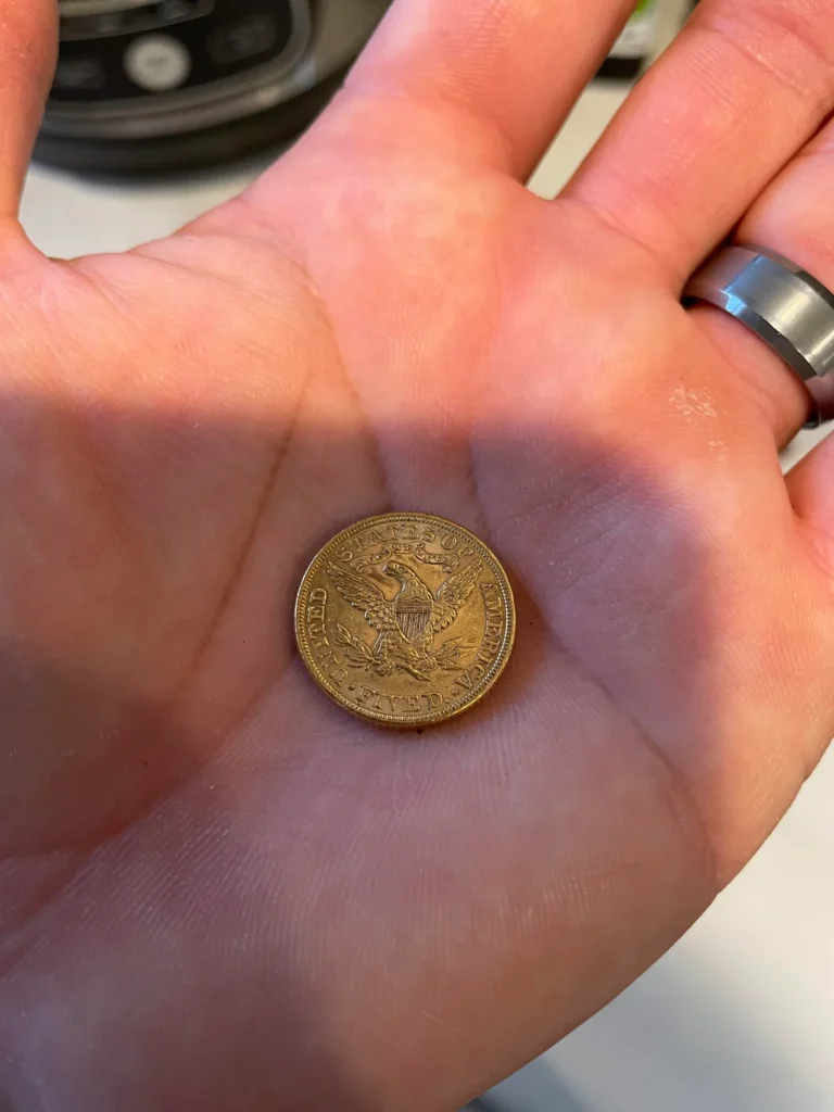 Słoik zawierał przeszyte i zawinięte w materiale; 10 złotych monet o nominale 5 dolarów, 2 monety o nominale 2,5 dolara i jedna moneta o nominale 1 dolara. Myślę że każdy marzy o takim remoncie u siebie w domu.