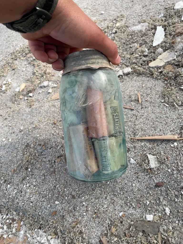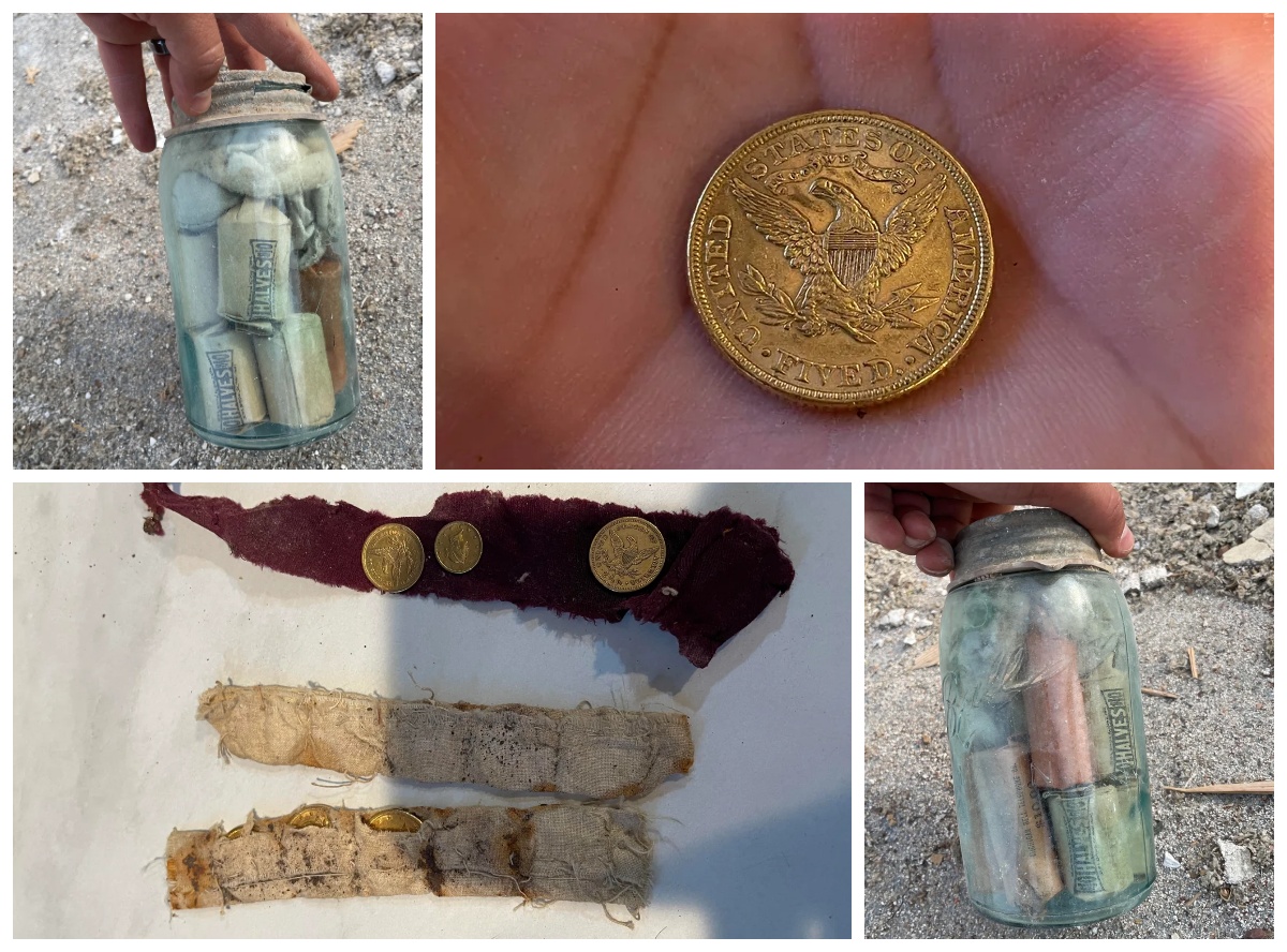 W sumie w odkrytym depozycie było już 174 srebrne monety 50-centowe. Znalazca jednak następnego dnia wrócił do kopania i ze ściany wyskoczył kolejny słoik. Tym razem trafił prawdziwe złoto…