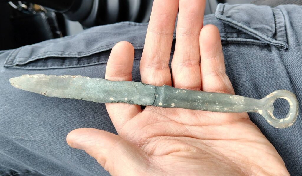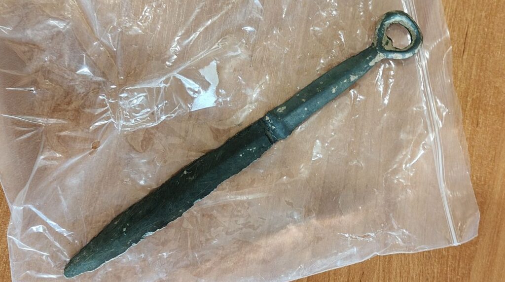 „Takiego starego odkrycia jeszcze nie mamy. Wykrywacz zaczął piszczeć jak na łuskę. Na początku myśleliśmy, że to nóż do rzucania, bo ma takie oczko na górze, ale wygląda jak sztylet. Po oczyszczeniu i uzgodnieniu z konserwatorem zabytków okazało się, że może on pochodzić z I lub II wieku. Prawdopodobnie to sztylet rzymski. Może on być jeszcze starszy. To się okaże podczas analizy w Krakowie”- Jan Marcinek w rozmowie z radiokrakow.pl