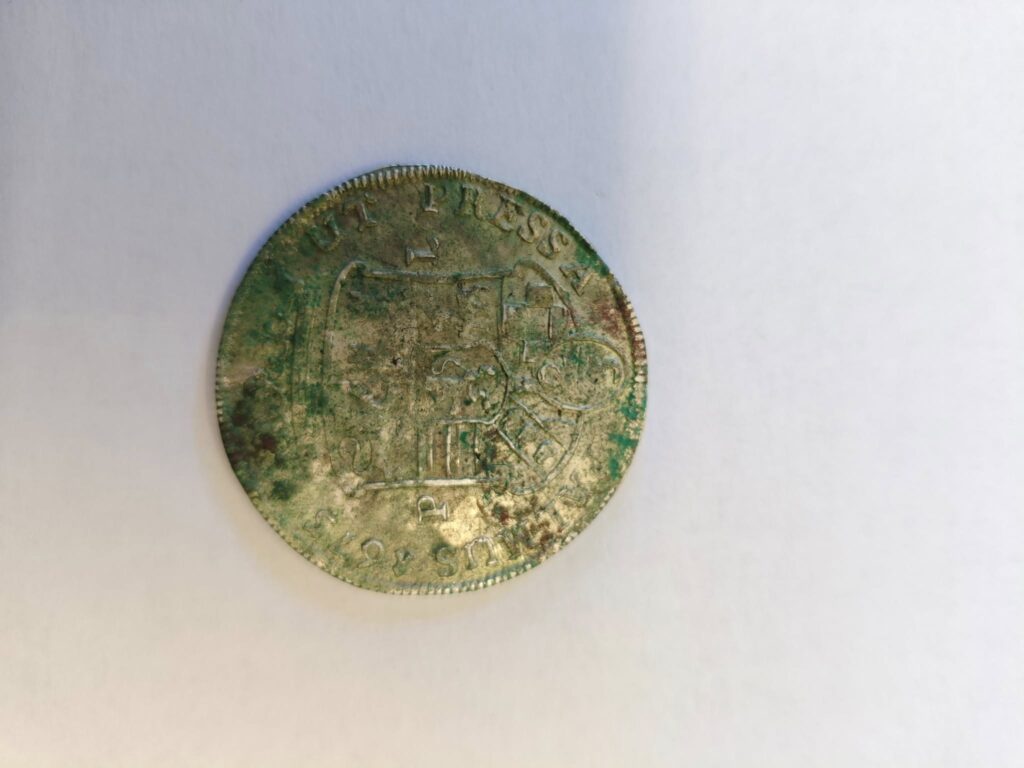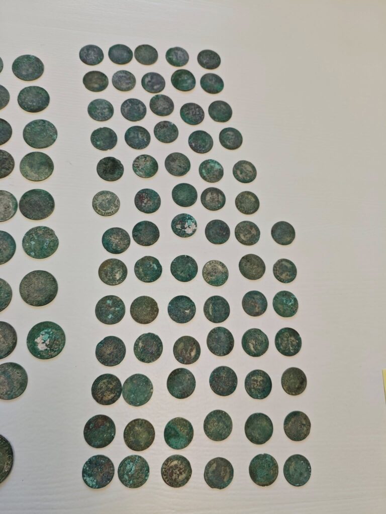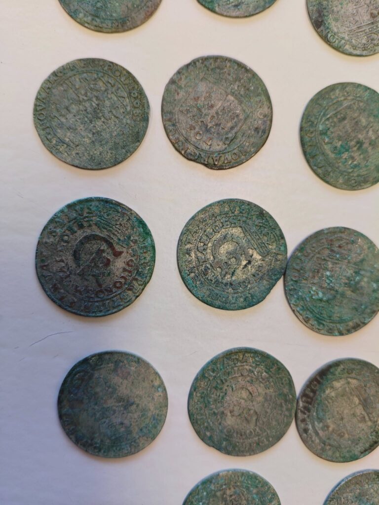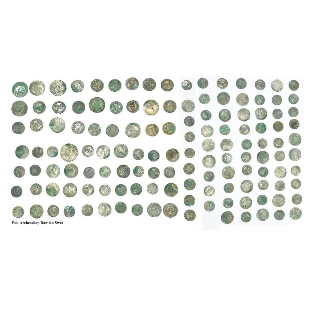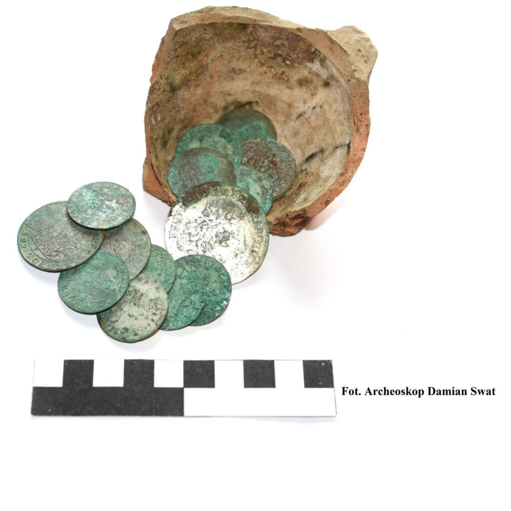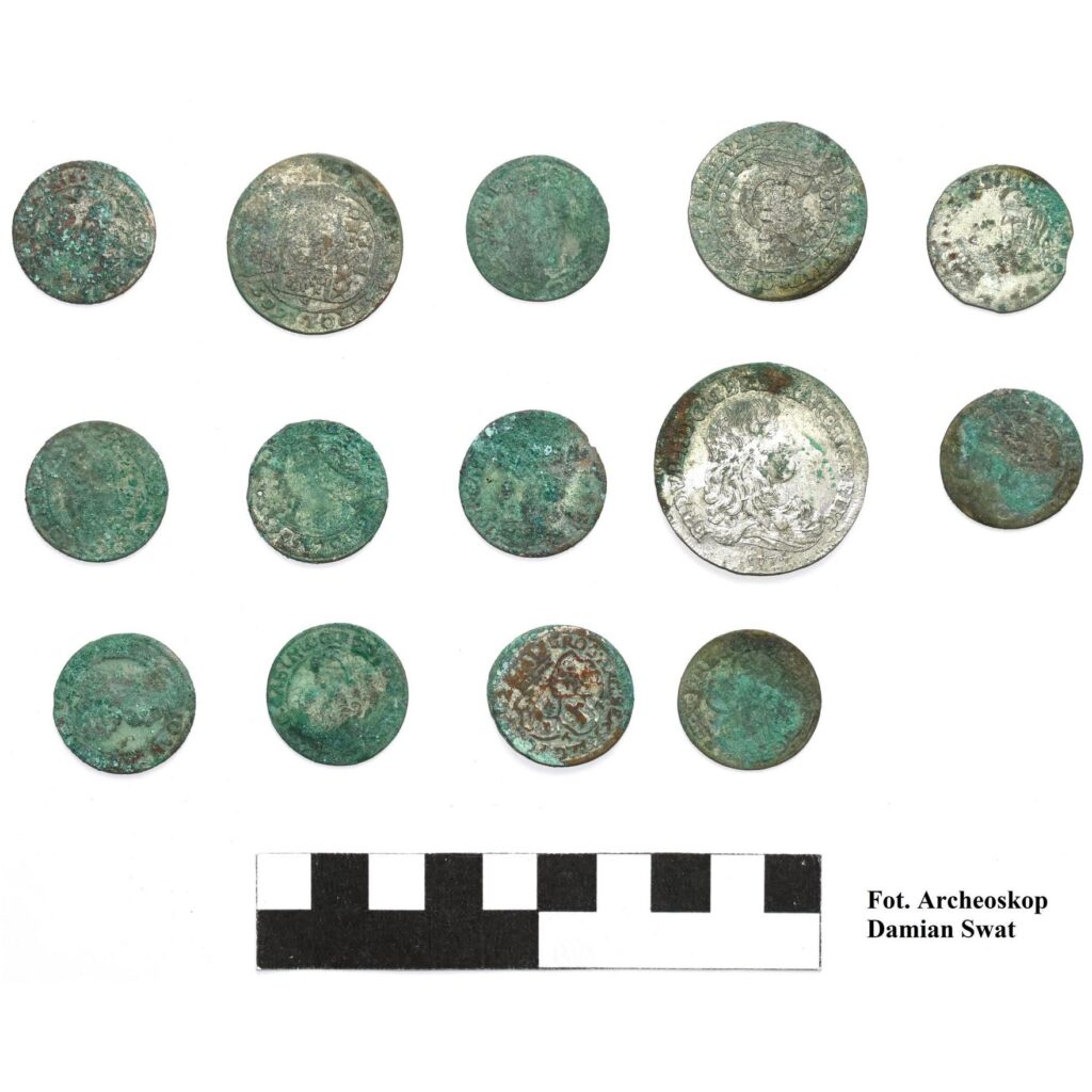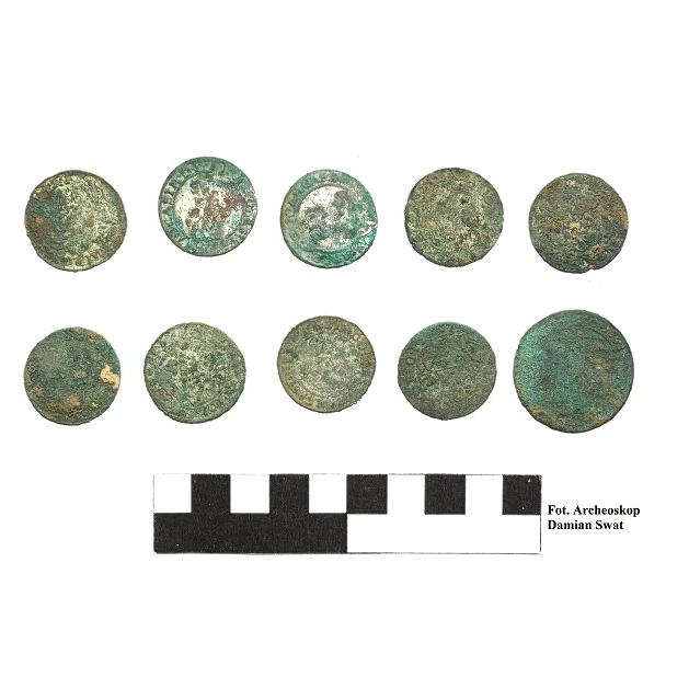 Monety datowane są na lata 1660-1679. Oprócz tego, archeolodzy odnaleźli fragmenty zabudowy dawnego folwarku z połowy XVII wieku.